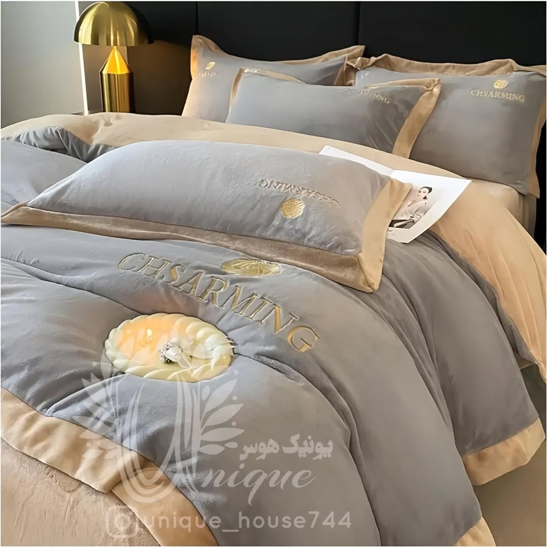 ✅️دونفره ۹تکه شامل:کاور تشک کشدوزی/لحاف با الیاف ۳۵۰ گرمی/کاور لحاف زیپدار/۴عدد روبالشتی/۲روکوسن