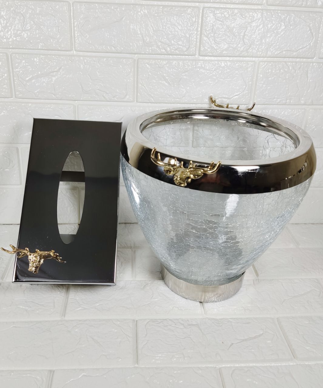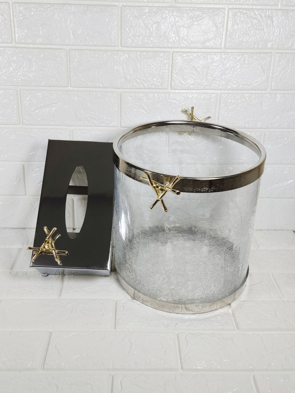 دستهبندی: سطل و دستمالبرچسبها : سطل و دستمالجادستمالسطلجنس: فلز آبکاری/شیشه آبگز عیار بالا شفاف درجه 1،ابکاری درجه1ابعاد: ابعاد دهنه 22cm ارتفاع 25cm
