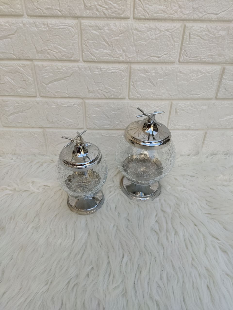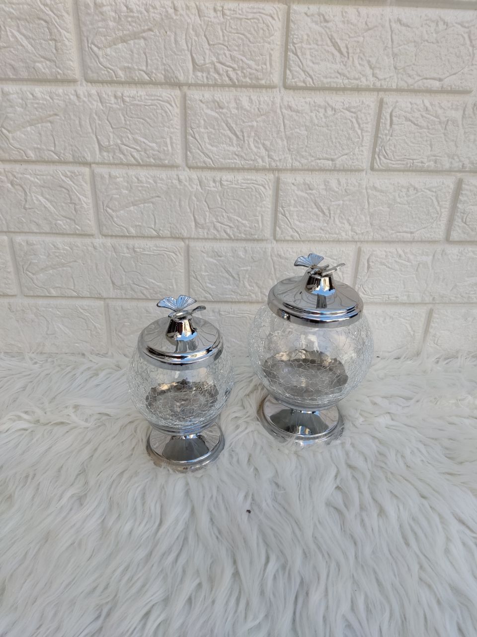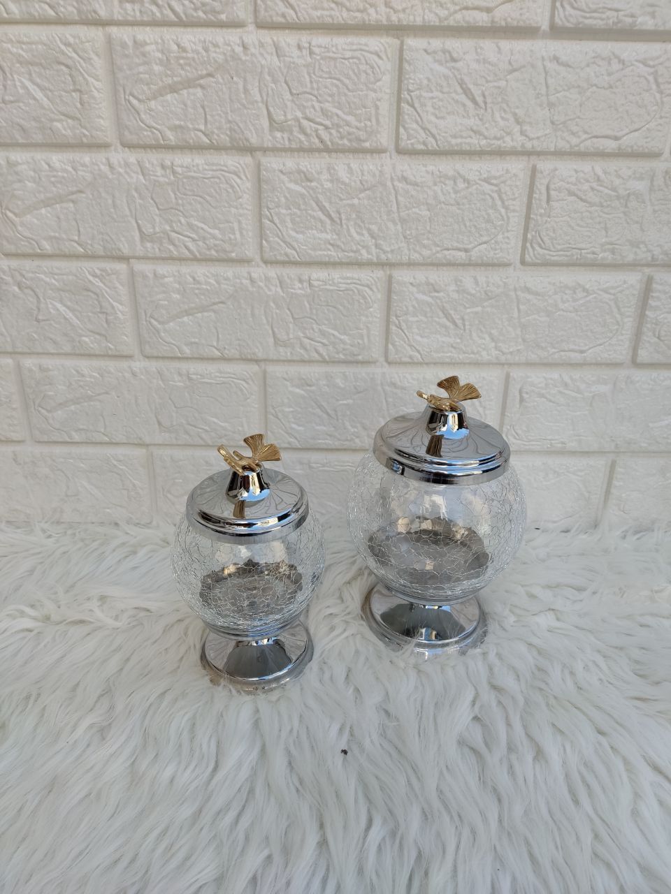ابعادابعاد قندان :دهنه 7cm ارتفاع شیشه با پایه 15cm ابعاد شکلات خوری : دهنه 8.5cmارتفاع شیشه با پایه 17cm