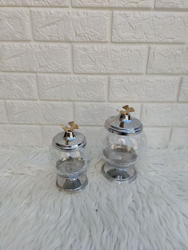 ابعاد: ابعاد قندان :دهنه 7cm ارتفاع شیشه با پایه 15cm ابعاد شکلات خوری : دهنه 8.5cmارتفاع شیشه با پایه 17cm