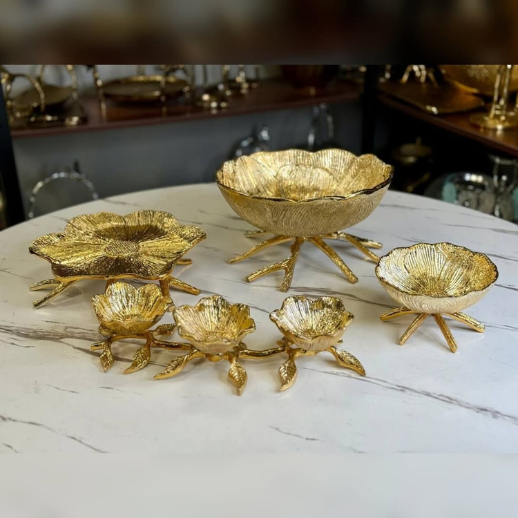جنس آلومینیوم کاسه بزرگ ابکاری براق pVd رنگ ثابت و قابل شستشو شامل میوه خوری،آجیل خوری،شیرینی خوری،اردو یا شکلات خوری ۳خانه